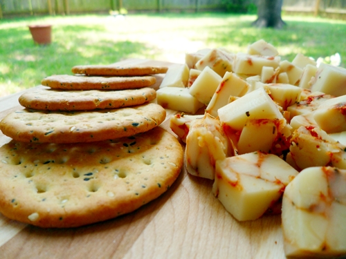 The cheese above was acquired a few months ago from the Enid, Oklahoma Farmers Market. Of course, now I don't remember exactly what kind of cheese it was, but I bought two kinds. I think both were cheddar based, one with sun dried tomatoes and one with bacon.
